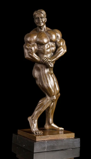 Hot Sale 2020 home LIVING ROOM wall TOP Decor ART--43 CM LARGE strong NUDE MEN bronze statue sculpture Decor