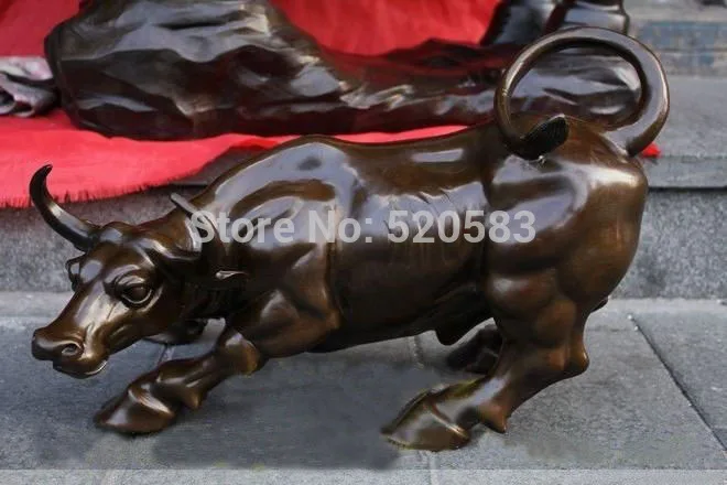 free Extra Large Bronze coffee Wall Street Bull OX Figure Statue 17"Long fast